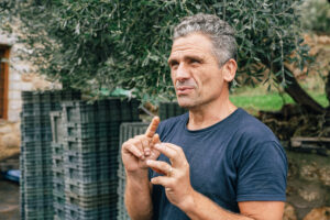 Mit Kostas verbindet uns ein gemeinsames Ziel: aus jeder Ernte das Beste herauszuholen – und Jahr für Jahr noch besser zu werden. Jede Saison bringt neue Bedingungen im Zuge des Klimawandels auch zunehmede Herausforderungen. Genau deshalb schauen wir gemeinsam so genau hin: vom Arbeiten im Hain bis zur Auswahl der Partien, die am Ende in unsere Abfüllungen gehen. Qualität ist hier kein Versprechen, sondern Ergebnis von Sorgfalt, Technikverständnis und konsequenter Auswertung.